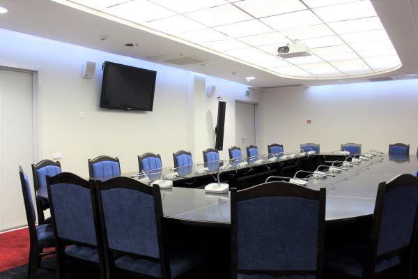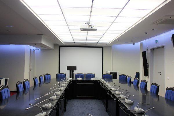 Оборудование: медиа-проектор, экран, звукоусилительная аппаратура, проводная конференц-система Bosch, беспроводные радиомикрофоны Bosch.