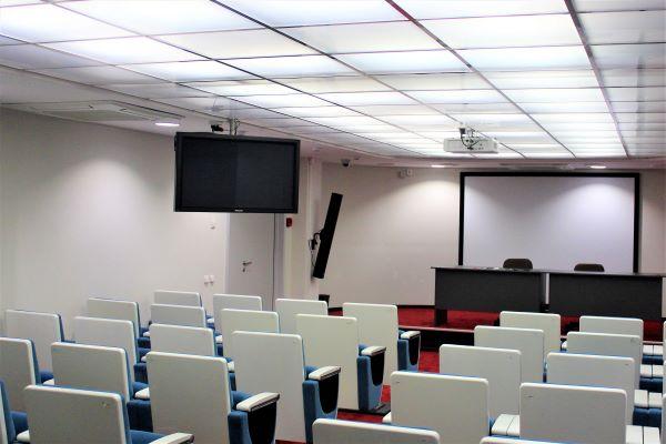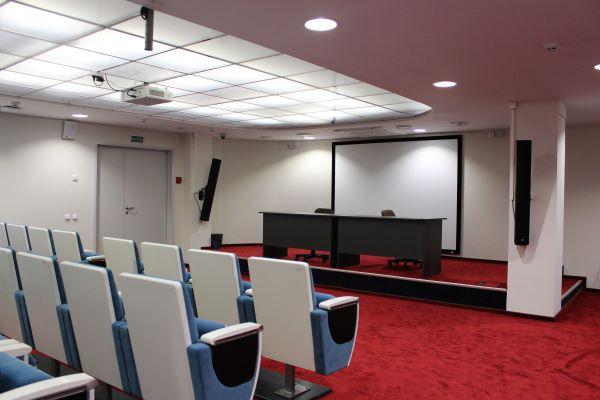 Оборудование: медиа-проектор, экран, звукоусилительная аппаратура, телевизионные панели, проводная конференц-система Bosch, беспроводные радио-микрофоны Bosch.