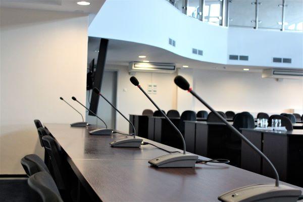 Просторное, технически оснащенное помещение с элегантным сдержанным дизайном, где комфорт и функциональность сочетаются с атмосферой торжественности и значимости. Зал заседаний предназначен для комфортного проведения важных переговоров, конференций и собраний, где создается подходящая обстановка для принятия важных решений.