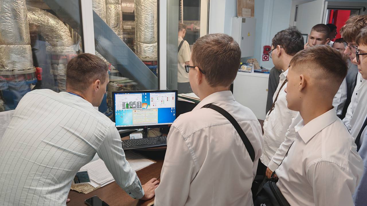 Далее будущих выпускников специальности «Техническая эксплуатация низкотемпературной техники» проводили в самое сердце арены — энергоблок. Ведущий инженер рассказал о технических и технологических аспектах функционирования такого оборудования, о системах энергоснабжения и устройстве объекта. Важным моментом экскурсии стал краткий обзор холодильного оборудования, которое обеспечивает комфортные условия для зрителей и участников мероприятий.